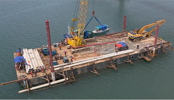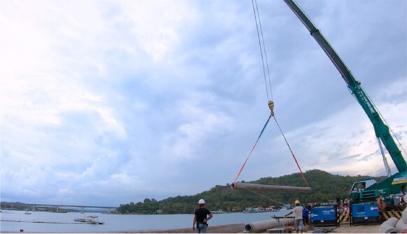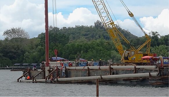 As part of the Penambahan Kapasiti Loji Rawatan Air Telibong 2, Tamparuli project, the scope of works included the Gayang–Serusop Submarine Pipeline installation, involving the laying of a 360-metre submarine pipeline executed through a coordinated marine construction approach. The works were supported by two barges, one tug boat, and two speedboats, with a workforce of approximately 40 experienced marine and technical personnel. The pipeline was laid